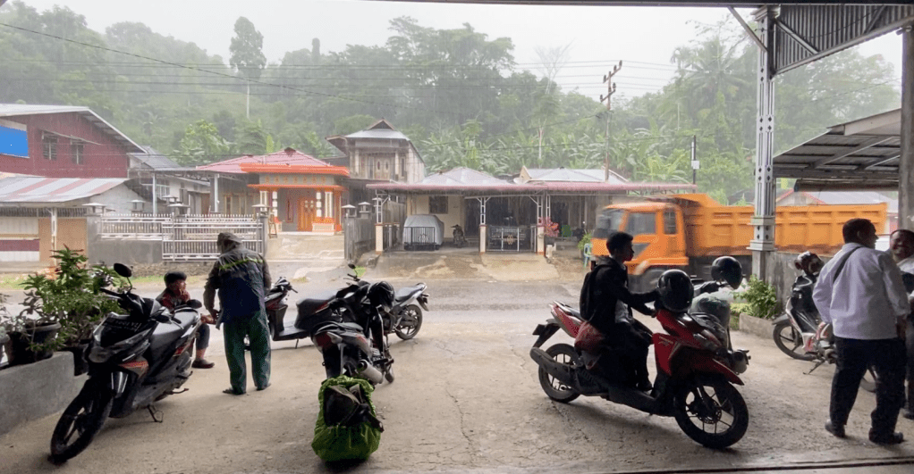 The rain pounds the tin above. We are in the entrance of a fertilizer warehouse that is not particularly well secured but also doesn’t really offer a profound bounty to would-be thieves. I am grateful for the trust of the proprietors. A few other travellers have opted to wait out the downpour under the same roof. They are fascinated by Mek, a 6-foot four inch (193 cm) blonde ‘bule’ who somehow speaks fluent Indonesian.