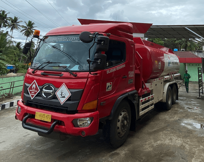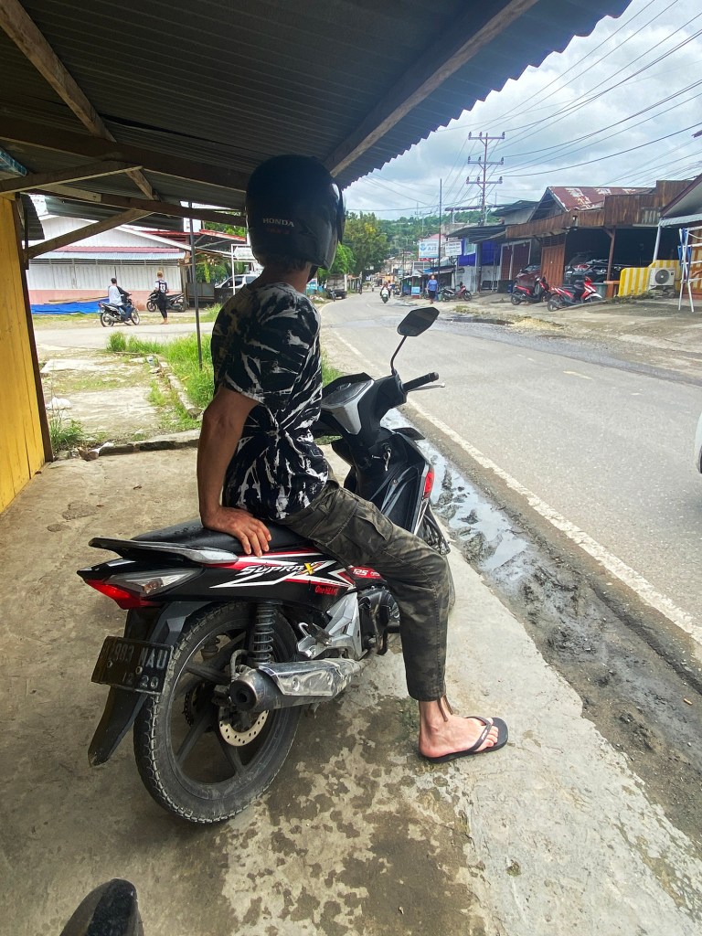 On the outskirts of the regional capital Gunungsitoli we pull into a gas station in mid-to-late afternoon on a humid Tuesday in July. After hopping off the bike a service station attendant is at the ready with a pump pistol. I don’t even know where the fill pipe is? She points the nozzle to the seat.