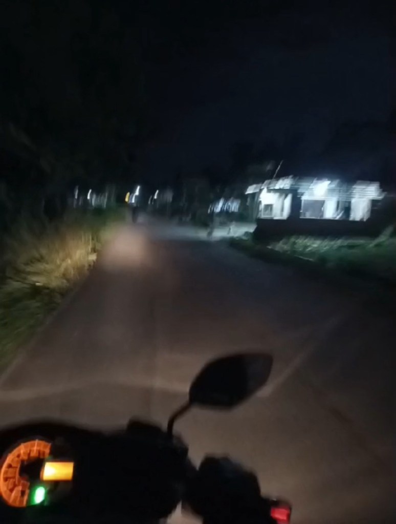I use his headlight as my own and split my attention between the lit road in front of his bike and his rear tire. It’s sketchy as hell but it works.